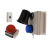 Our Long Range (800 metre) Wireless 'V' Range Siren & Flashing Strobe System, supplied with a Wireless Adjustable Siren with Flashing Strobe Light, Heavy Duty Push Button (with please ring etched onto it) & Battery Transmitter (inside a weatherproof box).