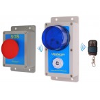 Wireless Panic Alarm designed for use in Shops & small Business premises, in the event of a Panic Button being press the Flashing LED & Multi-tone Siren will Latch On (until reset using a hidden wireless reset switch).