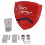The very simple to Fit HY Solar Wireless House Alarm Kit 3 using a Solar Wireless Siren which doubles up as a Control Panel and is Armed & Disarmed using the Remote Controls supplied (supplied with 2 x Magnetic Contacts & 1 x Curtain PIR), no need for any Electric Power Supply.