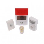 Battery Powered External Wireless Alarm supplied with 3 x External PIR's & 2 x Remote Controls, popular for protecting Gardens, Farms & Yards (No Power Required).